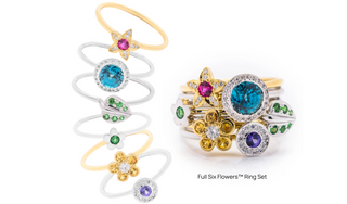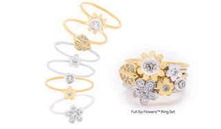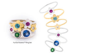 These bright fun stacking flowers are strikingly pretty. Set in delicate 18ct white, yellow and red gold; they can be worn separately or as a gorgeous set to form a 'bouquet'